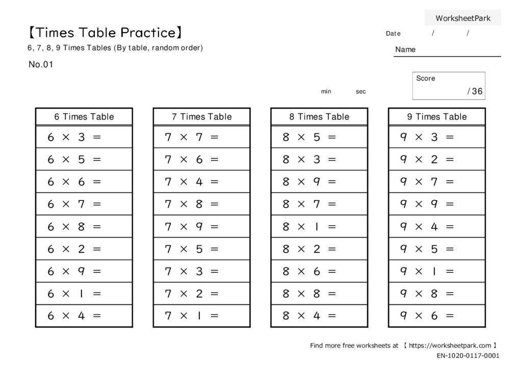 Kids' Learning Math Multiplication 【Times Table Practice】6,7,8,9 Times Tables File Info: PDF format, A4 SizeTerms: Free for personal & educational use PrintableRecommended Download PDFWorksheetAnswer KeyFull Set View PDF